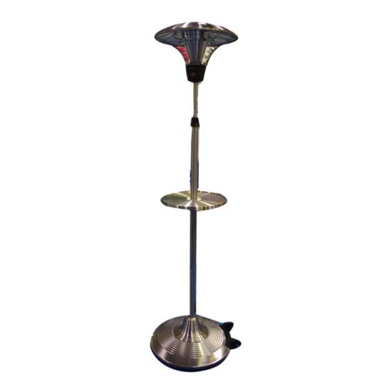 The patio heater features a stainless steel pole for enhanced durability. It offers reliable performance with dual halogen bulbs. This patio heater is a great choice for restaurants and hotels.