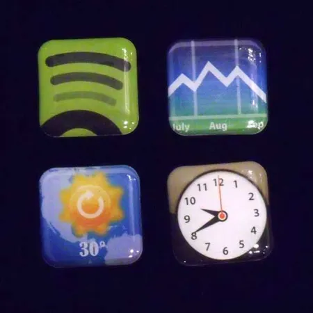 Shown here are four PPC-made magnets neatly fashioned into square shapes. They are styled with different interesting patterns, including a clock, a chart, a weather broadcast, etc. These magnets can also make your new collectibles.