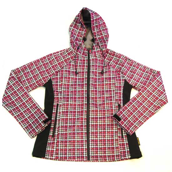 This hooded windbreaker comes with a slim cut for ladies. The windbreaker features allover houndstooth prints in sharp red. The soft texture offers great comfort for outdoor activities.