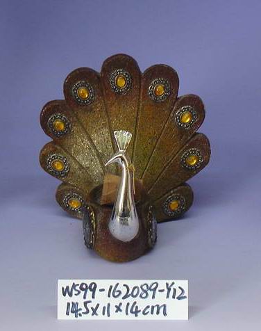 Polyresin peafowl candle holder.