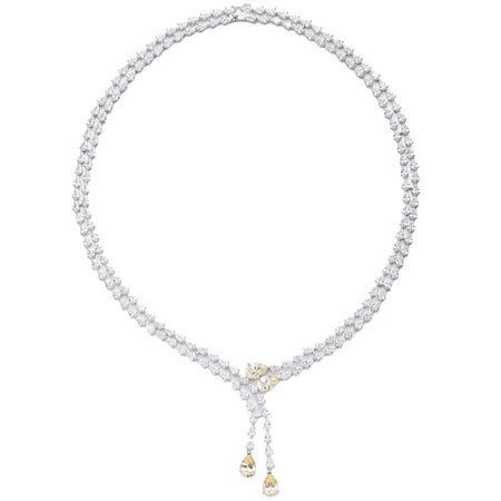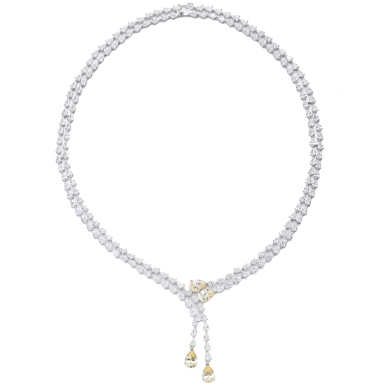 Pear Shape Diamond Yellow And White Cubic Zircon Rhodium Silver Necklace