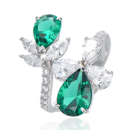Pear Shape Green Nano And Marquise White Cubic Zircon Rhodium Silver Ring