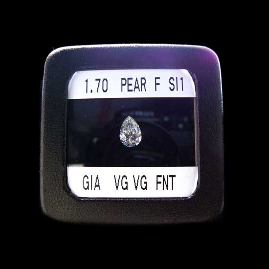 This 1.7-carat diamond features a pear-shape. With delicate facets, the stone gives out glamorous sparkles. The diamond is masterfully polished for maximum lustre.