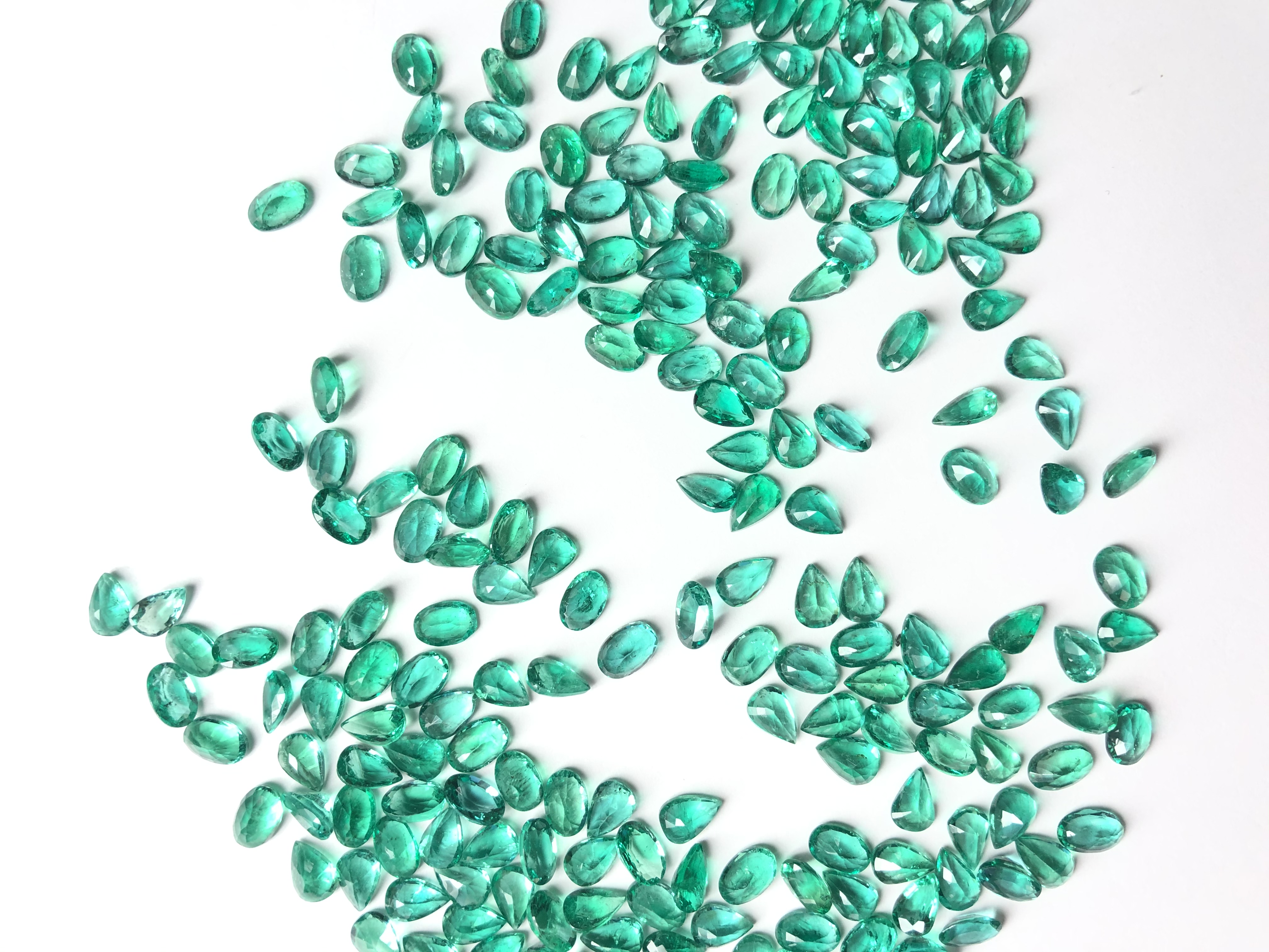 Showcased here are emeralds which are delicately treated. These emeralds are from Zambia and all the pieces are calibrated.