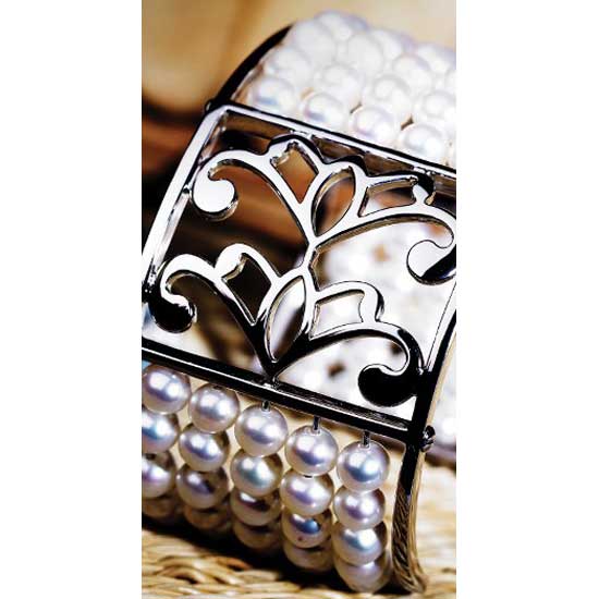 The alluring bangle touts a simple and elegant design finely crafted with precious pearls of high quality. Embellished with the perfectly executed patterns, the bangle outlines a graceful curve that matches your wrist. The ravishing bangle is perfect for enhancing your daily ensemble.