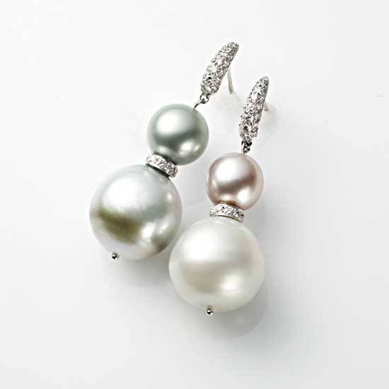 The South Sea pearl earrings boast a soft pastel hue with an elegant and polished touch. They are decorated with diamond-encrusted rings for radiant sparkles. These pearl drop earrings are perfect for cocktail parties, evening balls, banquets, etc.
