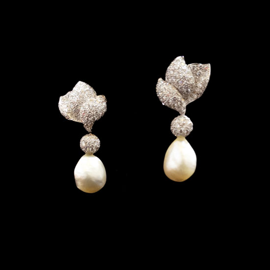 This is a pair of stylish earrings with a fashionable and elegant design. The earrings are crafted with natural saltwater pearls for a glamorous touch. This pair of pearl earrings is an ideal addition to complete your jewelry box.