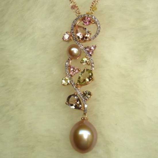 The dazzling necklace features a wavy S-like shape in bronze color construction. The pearl and shiny stone setting brings out a touch of decoration. This necklace will certainly add an eye-catching appeal to your outfits.