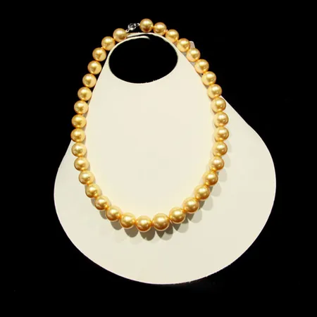 This elegant, fancy necklace is made with a fine selection of golden pearls. The attractive color and luster of these pearls lend an extra touch of glamour to your look. This stunning piece of jewelry complements your evening dresses impeccably.