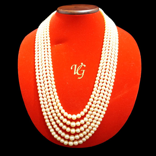 This pearl necklace comes with a 5-row design for a stylish touch. It is finely crafted with treasure and rare pearls for added elegance. This pearl necklace is great for complementing your chic look.