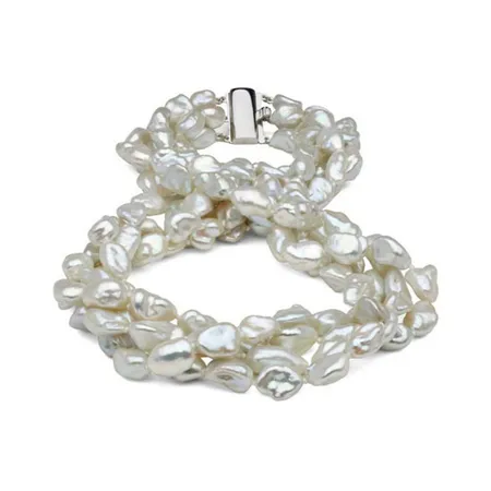 This stylish necklace comes with an unmistakably natural appearance. It is finely crafted with silver fresh water keshi pearls for added elegance. This 3-strand pearl necklace is finished with a 925 silver clasp.