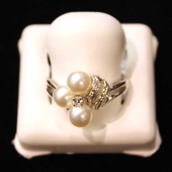 This pearl ring comes in a 3-pearl design. The diamonds embedded on the high-quality white gold frame adds glitter to the classy item. This delicate fashion ring is especially subtle for elegant ladies.