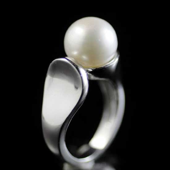 This is a gorgeous finger ring that features a large white pearl as the centerpiece. The ring band is finely made of karat white gold and silver. This pearl ring is surely an ideal addition to complete your jewelry box.