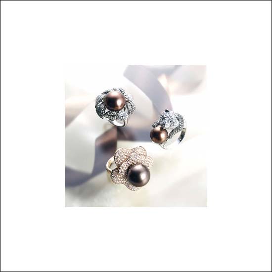 All rings are embellished with opaque round pearls in colors of chocolate brown and bronze