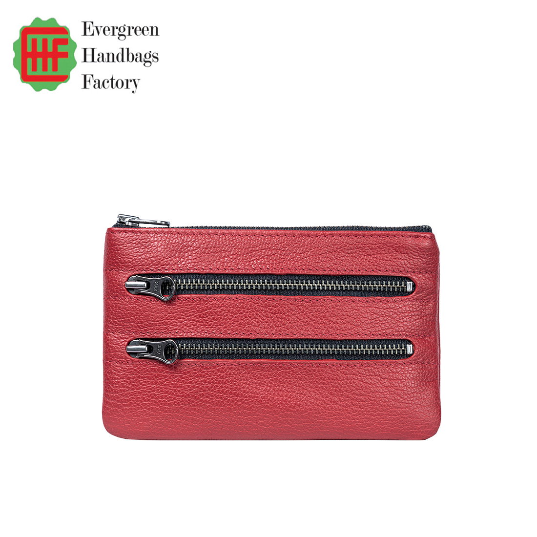 Pebble Cow Leather 3 Zipper Purse Pouch