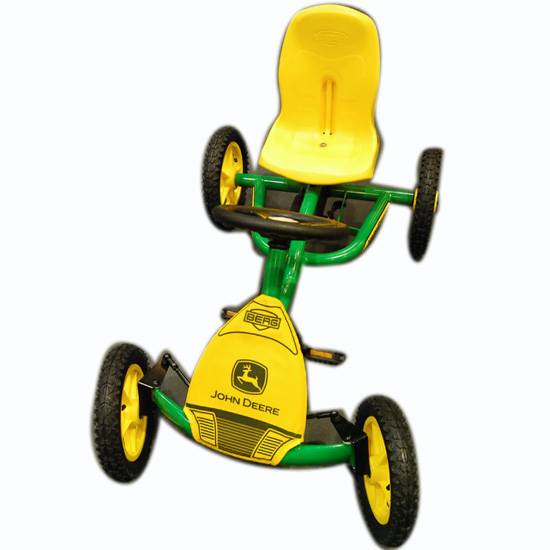 The John Deere go-kart looks so real that you might have to watch out for police asking for your driving license. The durable metal frame promises lasting durability. Now you can help around the farm with your own John Deere.