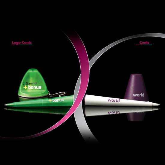 Pictured is a series of pen holders made of quality plastic. The pen holders appear in a cone shape, which holds one pen at a time. Customized logos can be printed on the holders for bettered promotional effects.