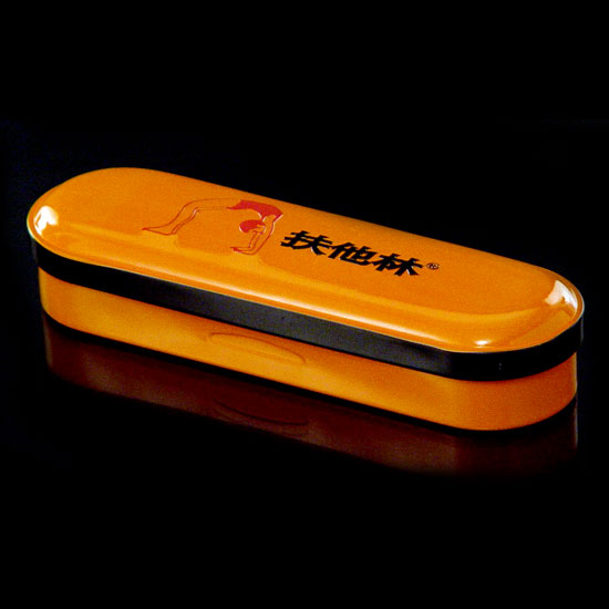 Featured here is a tin pencil box created with an embossed company logo for promotional use. This rounded design and metallic structure are pleasant and smart. The pencil box is also available in customized designs.