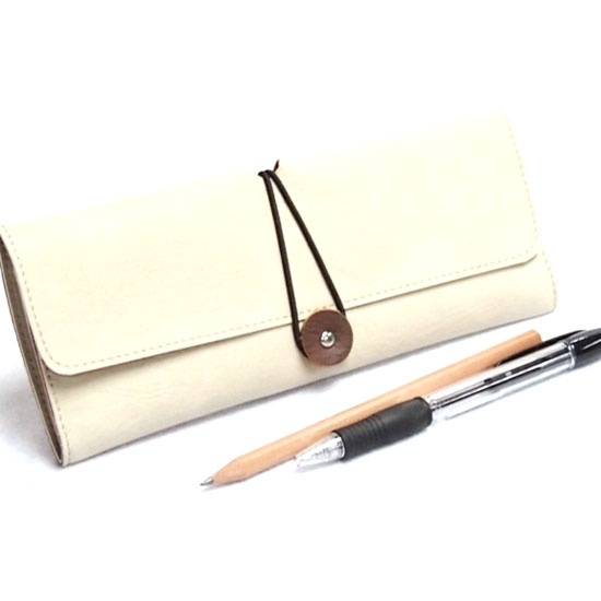 This is a pencil case in a rectangular shape with a stylish design. It comes in white with a snap closure. The high-quality material promises an extended service life.