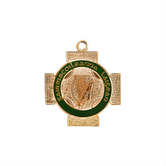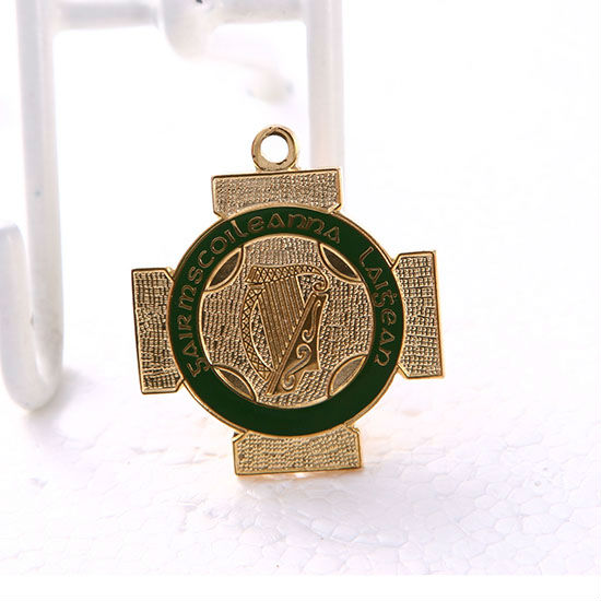 Amplify the character of your outfit with this pendant that engages a polished gold-tone cross exterior. Encapsulated with debossed patterns, it highlights a firm green ring with delicate wording decorations, taking on a charming appeal of opulence. The top eyelet further promises sturdiness and versatility for pairing with different necklaces.