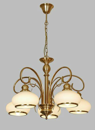 Iron material frame, antique brass color plating, white glass lamp shade.