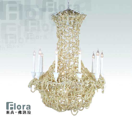 This grand pendant lamp comes with golden-hued chains winding on the frame. It is surrounded by multiple candle lights for extra appeal. This striking pendant lamp adds spice to your ceiling easily.