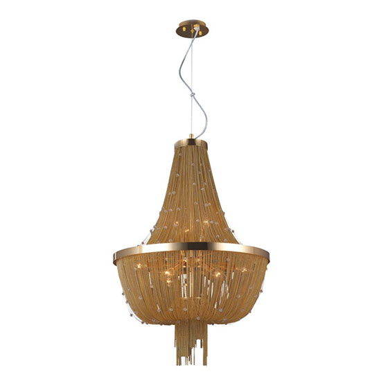 This is a pendant lamp that comes in a grand style. With golden tassels as the shade, this lamp offers comfortable illumination for the entire room. This lamp uses fluorescent bulbs for saving energy.