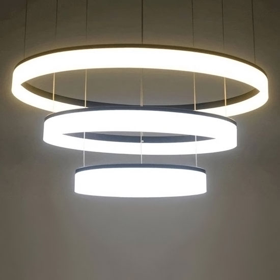 This is a unique pendant light with three rings in different sizes. It is sturdily constructed for enhanced durability. This stylish pendant light blends into any modern home decoration easily.