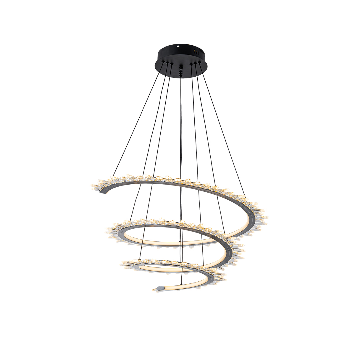 This ring crystal chandelier adds a little sparkle to the interior. Crystals blend into a modern style, making this chandelier both stylish and elegant.