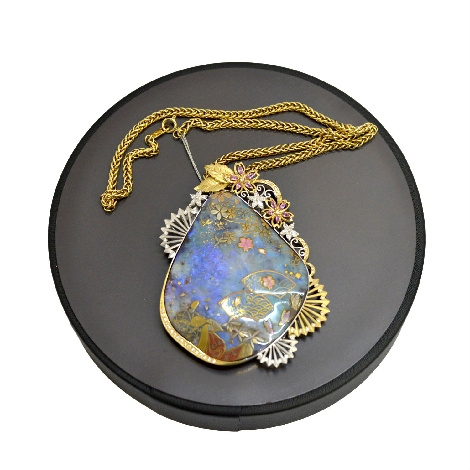 Material: opal(58.14cat), 18k gold, loose diamond and ruby