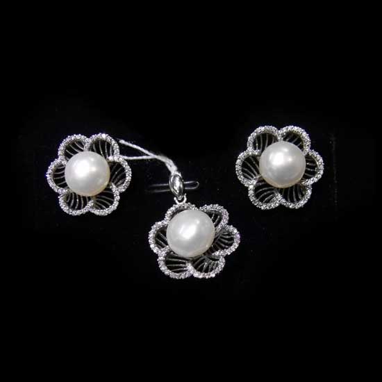 This pendant and pair of earrings feature a flower-shaped design for a feminine touch. Each item comes with a smooth and round pearl in the center and glittering details on the rim. These fascinating jewelry items are sure to lure in ladies’ attention.