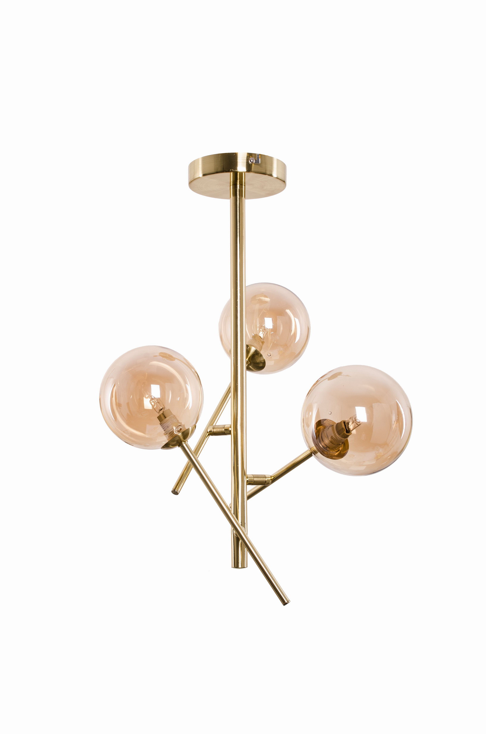 Featuring a shiny multi-arm metal frame, this lighting fixture dangles three integrated globe glass shades over small or large rooms. The flush lighting fills up the space with comfortable light intensity, while utilizing LED light source that is comparatively energy-efficient for long lasting use.