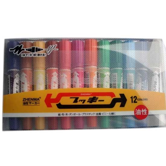 Showcased is a set of markers coming with oil-based ink. The markers are designed in a two-head design with one wide and one fine. The wide color options meet various needs in marking and drawing.