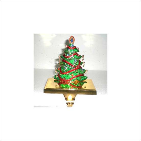 Stocking holders in gold, which makes up the base of the Christmas tree as a decoration