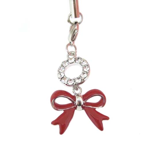 Highlighted is a delicate mobile phone strap for ladies. The strap features a butterfly-bow adornment matching a shiny stone ring. The feminine appearance is perfect to add character to ladies’ phones.
