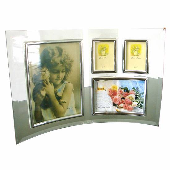 This photo frame presents a curvy shape, which can carry a total of four photos of different sizes. The largest one is on the left, while on the right side are three small pieces. The curvy shape is another attractive point because such a shape resembles waves in an ocean, making this photo frame look romantic.