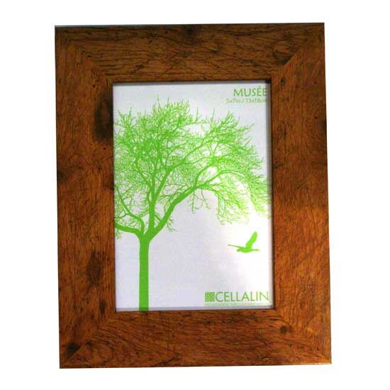 The featured photo frame comes in portrait orientation. The thick frame is embellished by natural wood-grain patterns, offering a graceful touch. Store a photo of your precious moment with this finely made photo frame.