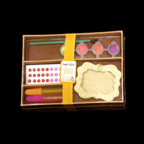 Featured here is a creative photo frame set designed for the kids. The set includes a plain photo frame, glitter glues, beads and other accessories for your kid to create their own photo frame. Let your kid explore the artistic world with this fun set.