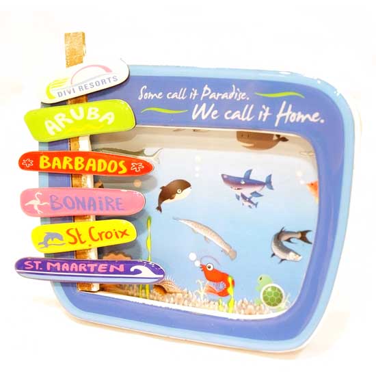 This photo frame snatches people’s attention immediately with its vibrant colors. The lovely photo frame comes in a rectangular shape with round corners. The photo frame features an ocean theme with various kinds of marine life, lightening up your mood undeniably.