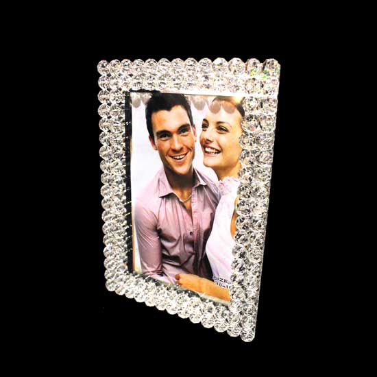 This rectangular-shaped photo frame features crystal and glass balls on four edges. The tasteful photo frame is perfect for displaying romantic wedding photos. It makes a wonderful addition to your bed-side table, book shelf, piano, etc.