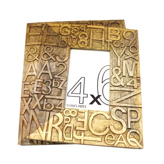 This unique wooden frame is hand-carved with English letter and Arabic numbers. The tasteful photo frame is perfect to display photos of any style. It makes a great addition to your home and office decor.
