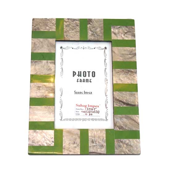 This photo frame boasts an eye-catching and charming design. It is made of bone and MDF with green stripe patterns. This elegant picture frame is a great decoration for your home or office.
