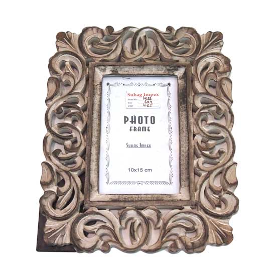 This is an artistic photo frame with a retro appearance. It features a wooden structure carved with sophisticated and exquisite patterns. The skillfully crafted piece is a wonderful addition to your home décor.