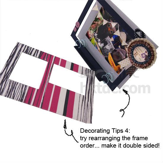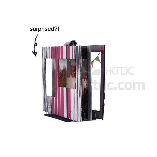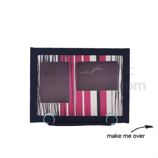 Get together and give yourselves a memorable moment with our Photo-Frame-For-Fun. It features with the shocking pink stripes fabric print to deliver a stylish appearance. By just rearranging each frame's position and order on the stand, you can change the photo frame from single to double-sided. You can also give yourselves a bit more fun by adding embellishments you like on it.