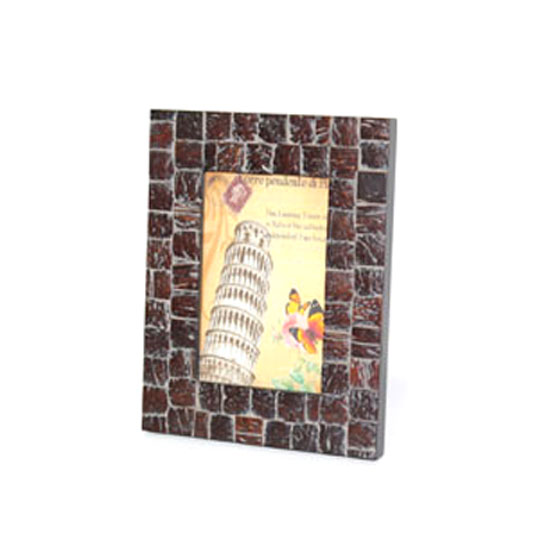 This is a photo frame coming in a rectangular shape. The frame is finished with brick patterns in a brown color. Protect your precious family photo with this decent photo frame.