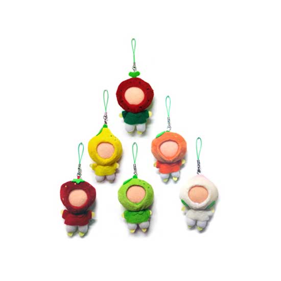 The mobile phone strap boasts a stuffed doll dressed in a fruit-themed outfit, pushing the cuteness limit and bringing a smile on your face. It enables you to insert a small photo of your loved ones into the face of the stuffed doll. Transform your friends into lovely little ones and carry them along wherever you go.