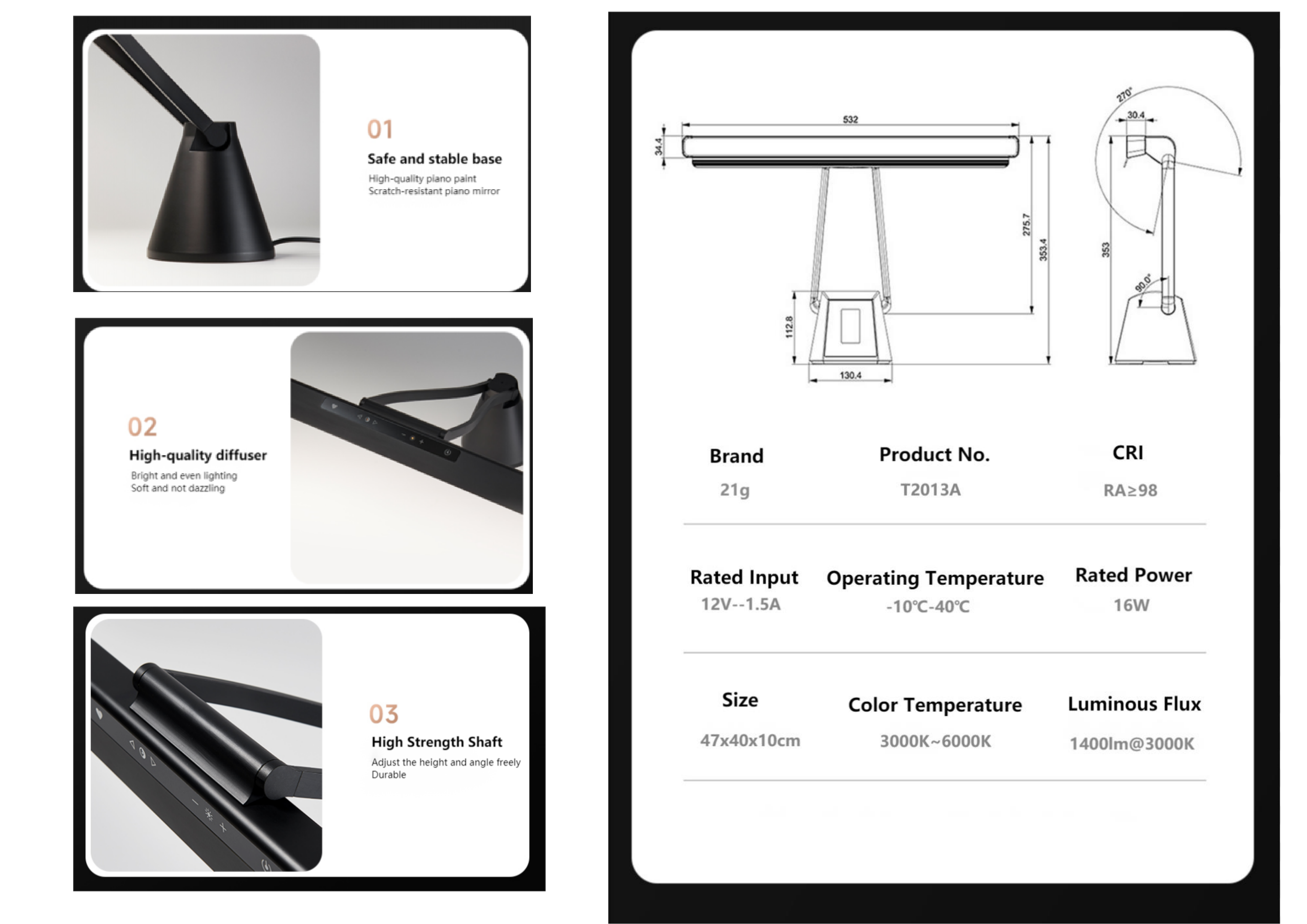 The 532mm ultra-long lamp head, illuminates 88 keys and scores in the whole area, and there is no overlapping shadow when playing.