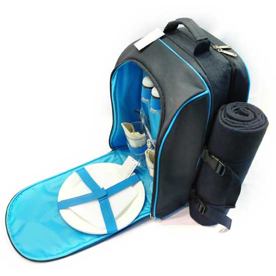 This sophisticated picnic backpack comes with all the accessories necessary for picnicking or camping, including a fleece picnic rug, a bottle holder, eating utensils, and cutlery items. The backpack is made of strong and durable polyester with excellent water-resilient properties. Stay equipped with this deluxe picnic backpack.