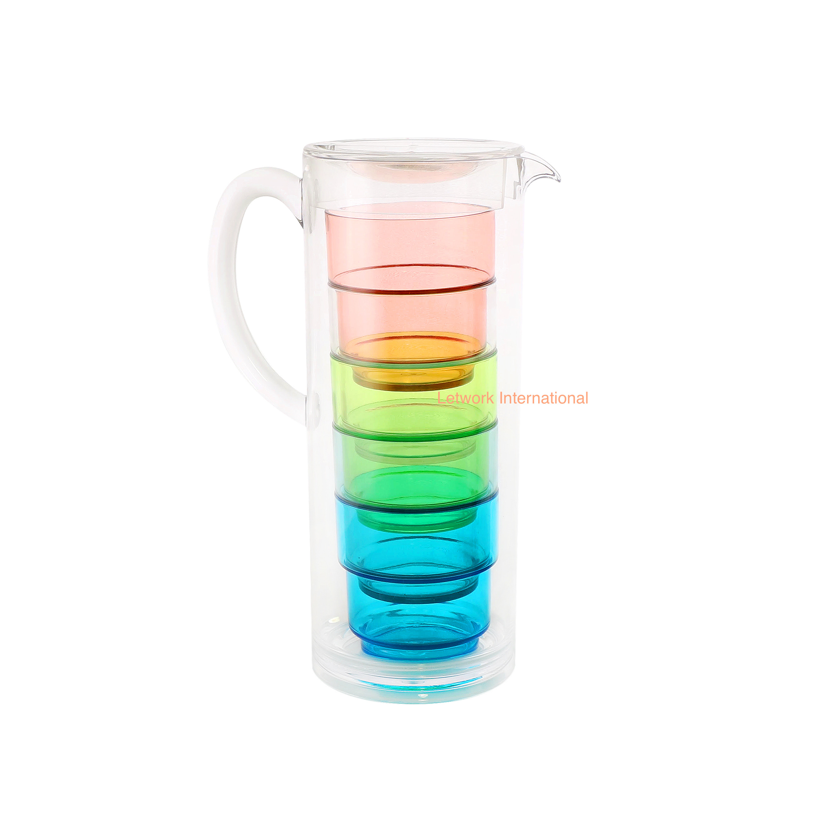 One pitcher with five tumblers, very easy to carried out. Can be taken for picnic and any other outdoor activities. Also, the tumblers can be customized up to five vivid colors.