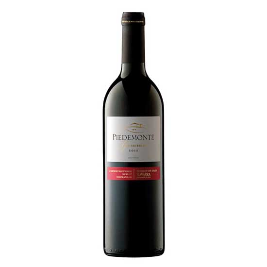 Displayed is a bottle of red wine that originates from Spain. Made of a balanced mixture of Tempranillo, Merlot and Cabernet Sauvignon, this red wine has fruity note with a smooth mouth feel. Being a young wine of 2012, this table wine has a modern style and is of good commercial value.